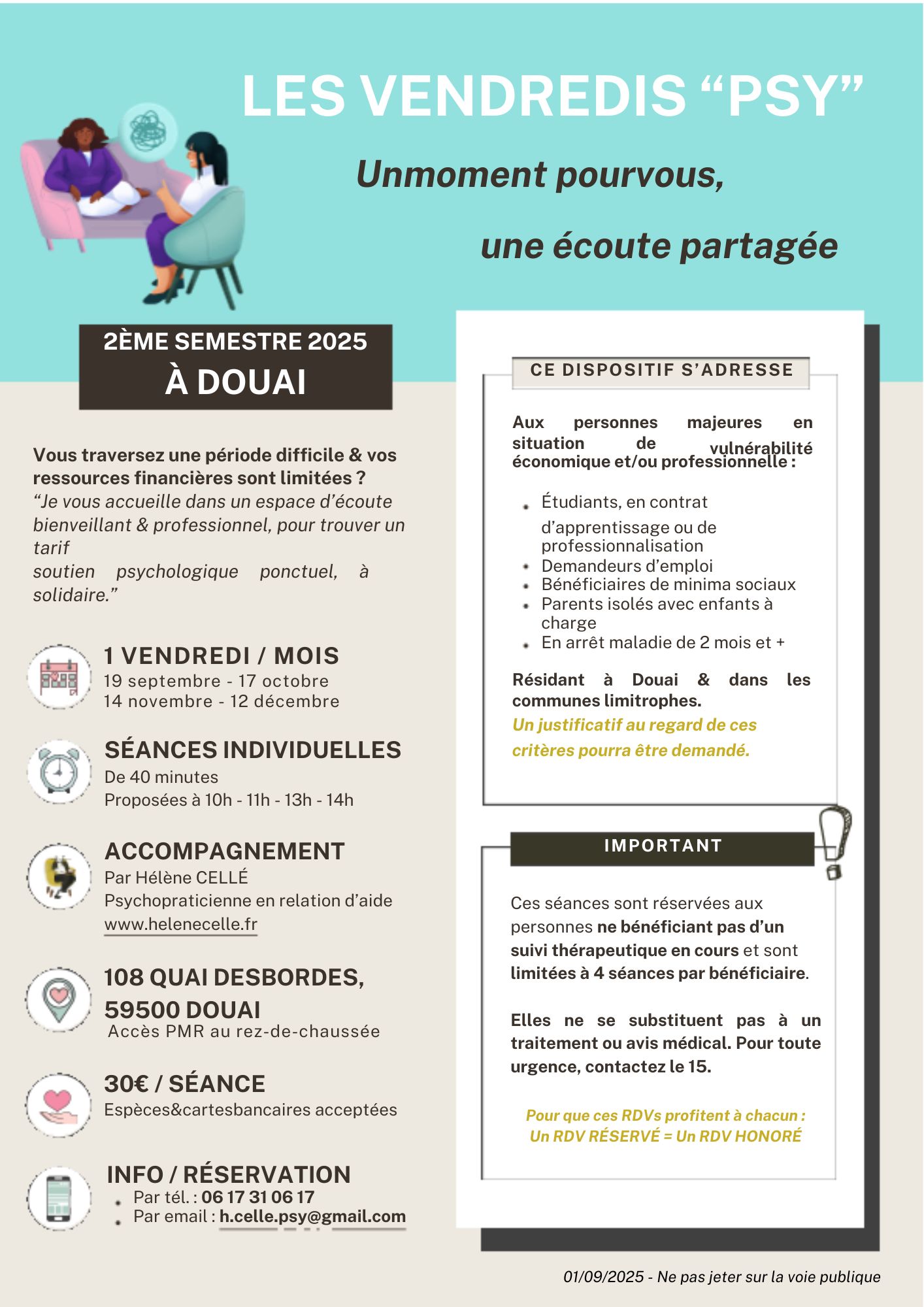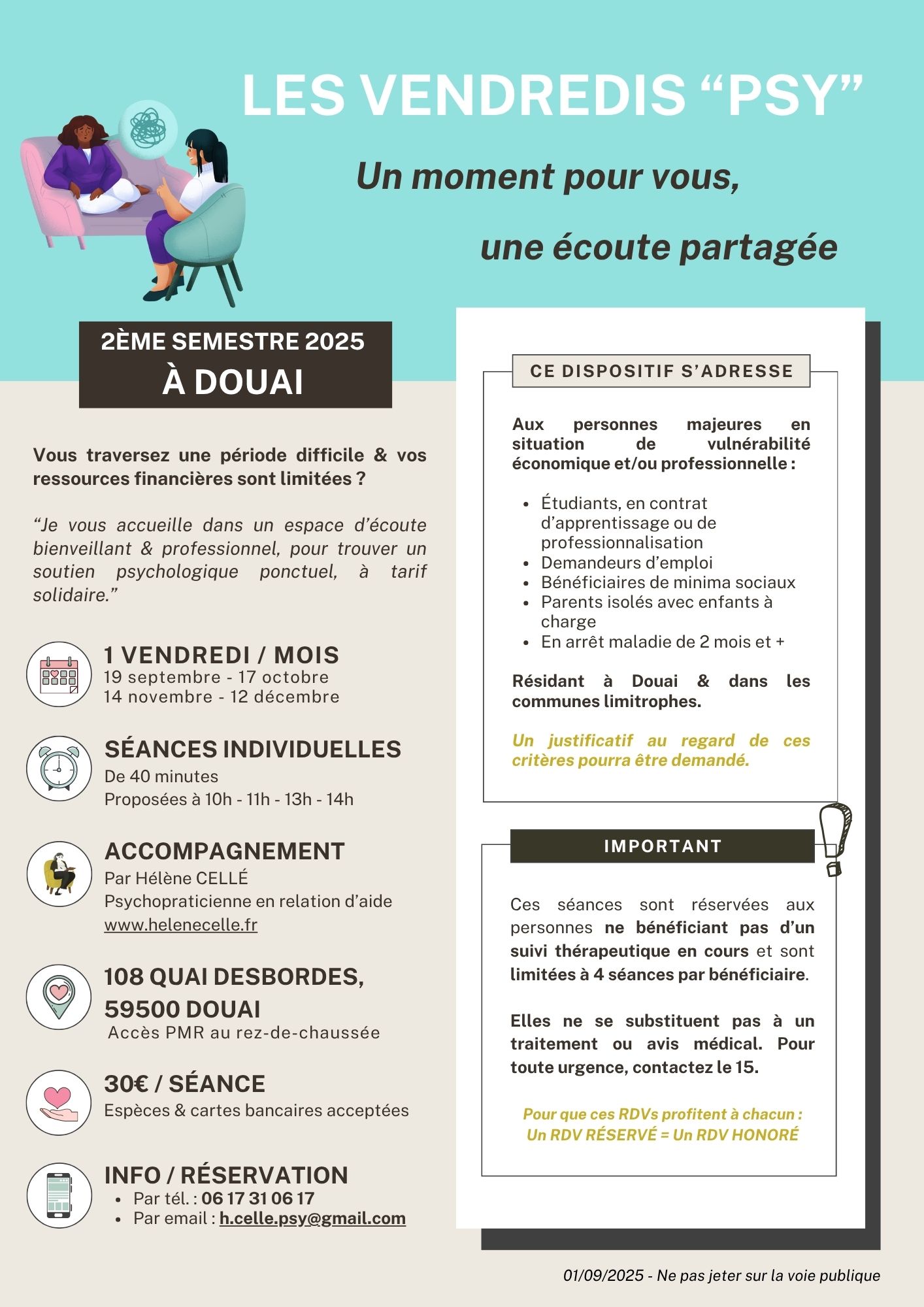 Les vendredis « psy » : Dispositif d’écoute et de soutien psychologique à tarif solidaire dans le Douaisis